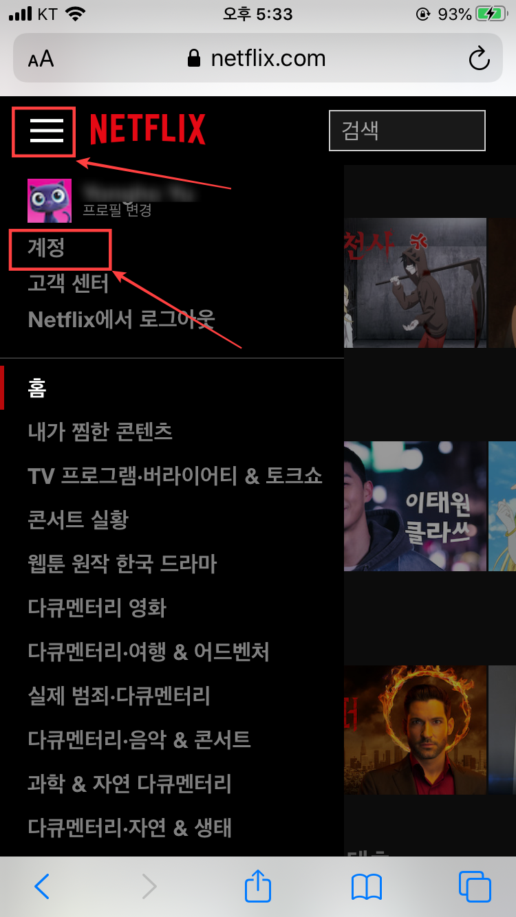 스마트폰에서 하고 싶다면 크롬이나 사파리 같은 웹브라우저로 넷플릭스(netflix.com)를 접속하면 할 수 있습니다.