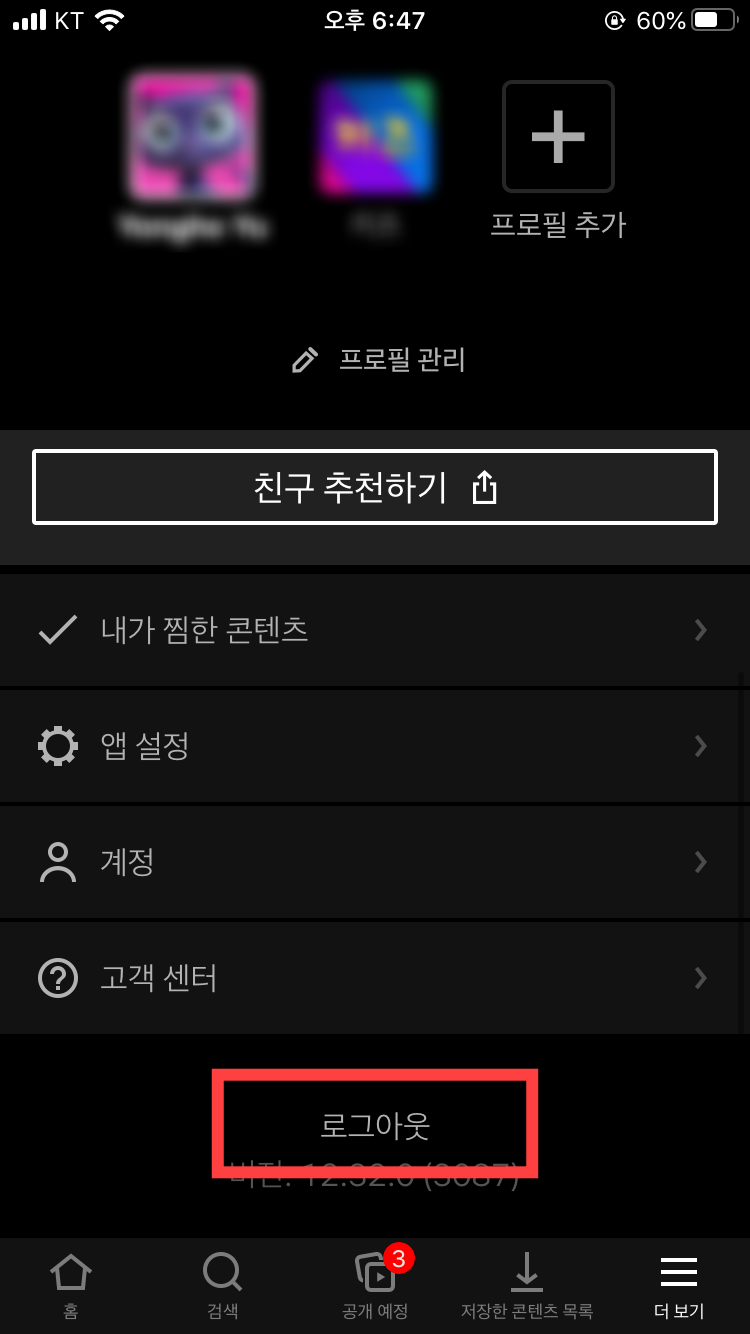넷플릭스 로그아웃을 알아봤습니다. 알고 나면 별 거 아니지만, 모를 때는 답답한 게 앱, 웹 사용법인데요. 저도 처음에는 로그아웃 버튼을 못 찾아서 앱에서 로그아웃을 못했던 기억이 있습니다. ㅎㅎㅎ